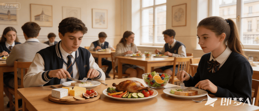 小知识:法国学校午餐被纳入"文化教育",老师会讲解食物背后的历史与文化,如"为什么吃奶酪?"。
